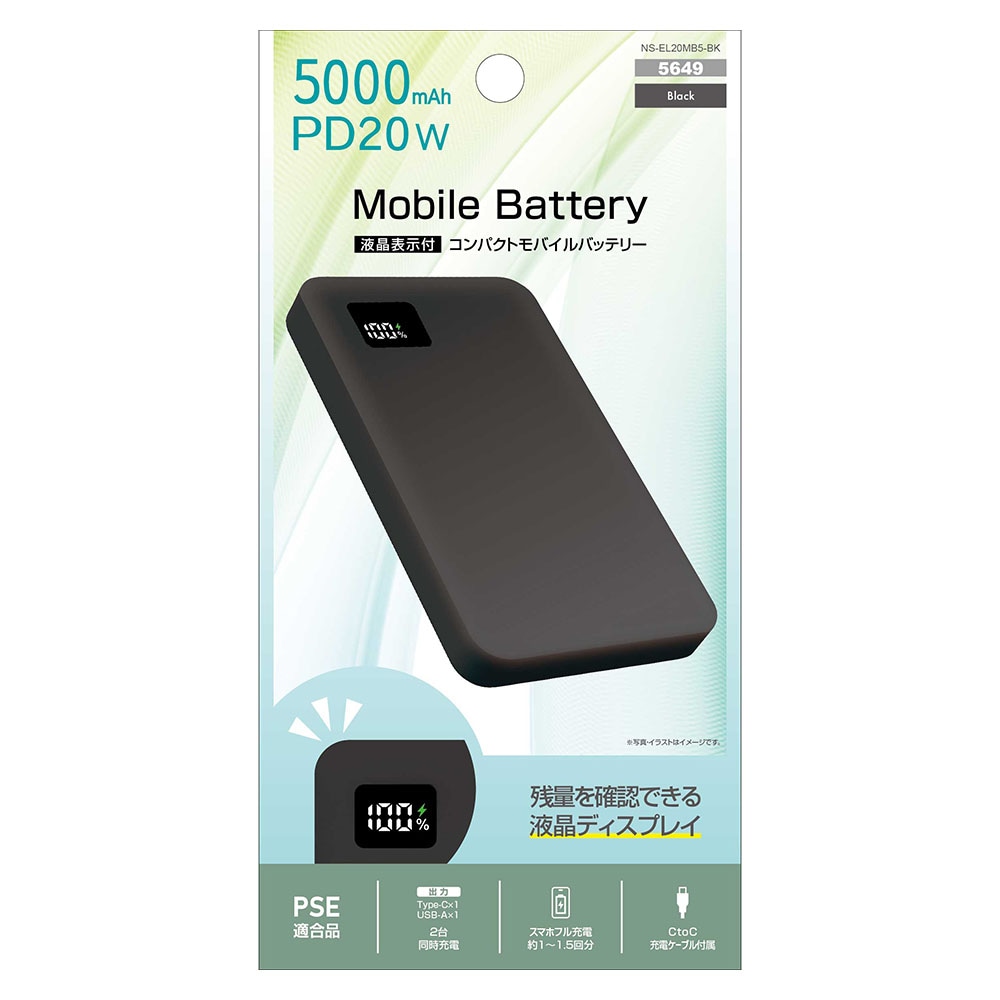 液晶表示 PD20W コンパクトモバイルバッテリー5000mAh