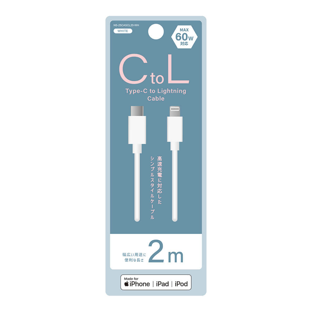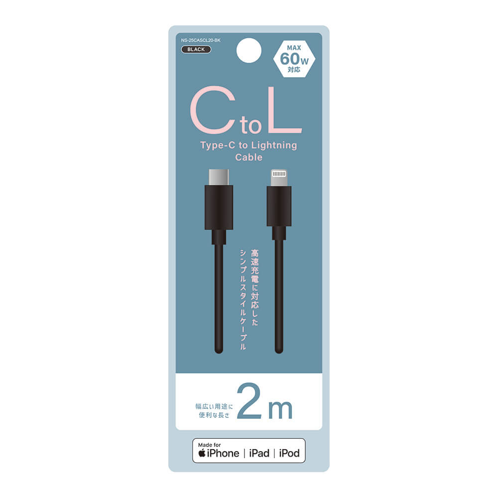 ■ Lightningコネクタ対応のiPhoneやiPad、iPodをType-C搭載の充電器やパソコンに 接続して充電・データ転送ができるケーブルです。